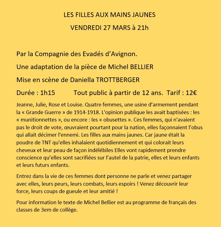 Un commentaire sur « Vendredi 27 mars 2026 : Les Filles aux Mains jaunes »